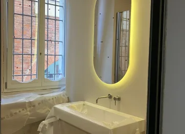 Il progetto di specchiera su commissione privata rappresenta un'opera d'arte funzionale che combina estetica impeccabile con tecnologia avanzata. Realizzata
